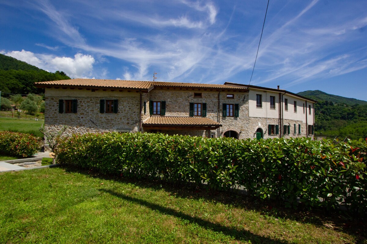 Apartment na tinatanaw ang Tuscan - Emilian Apennines, ilang minutong lakad mula sa medyebal na nayon ng Bagnone, kabilang ang pasukan sa living area na binubuo ng kusinang kumpleto sa kagamitan, silid - kainan/sala, dalawang double bedroom at banyo sa ground floor. Sa ikalawang palapag ay may malaking attic area na may double bedroom, single sofa bed, at banyo. Hardin na may BBQ at eksklusibong dining area, shared swimming pool.