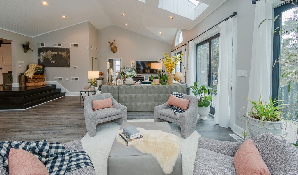 The Belevdere Lodge of Evesham Park is not as pretentious as it sounds. As you walk in, the first floor is filled with cheery colors to greet your party. The living room is comfortable and cozy. The dinning room is great for family dinners or having a meal on the road that's not in a restaurant. The modern kitchen is fully stocked with all the utensils to use to cook a great homemade meal.