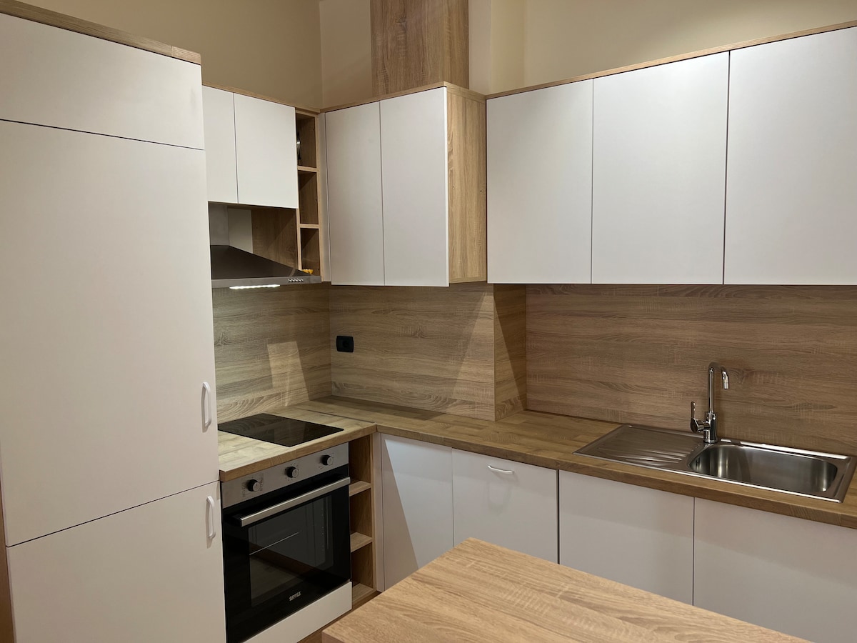 Magandang apartment sa pinakamagandang lugar ng Tirana, na matatagpuan sa Blloku area , isa sa mga pinakasikat na kalye sa Tirana. Maigsing distansya mula sa sentro ng Tirana. May mga bar at restaurant na nasa paligid lang at may supermarket na 10 metro lang. 5 minutong lakad lang ang layo ng Lake of Tirana. Ang apartment ay nasa ikalawang palapag ng umiiral na gusali. Walang elevator pero makinis ang hagdan. 10 minutong lakad ito mula sa Skanderbeg Square at 5 minuto mula sa Mother Teresa Square.