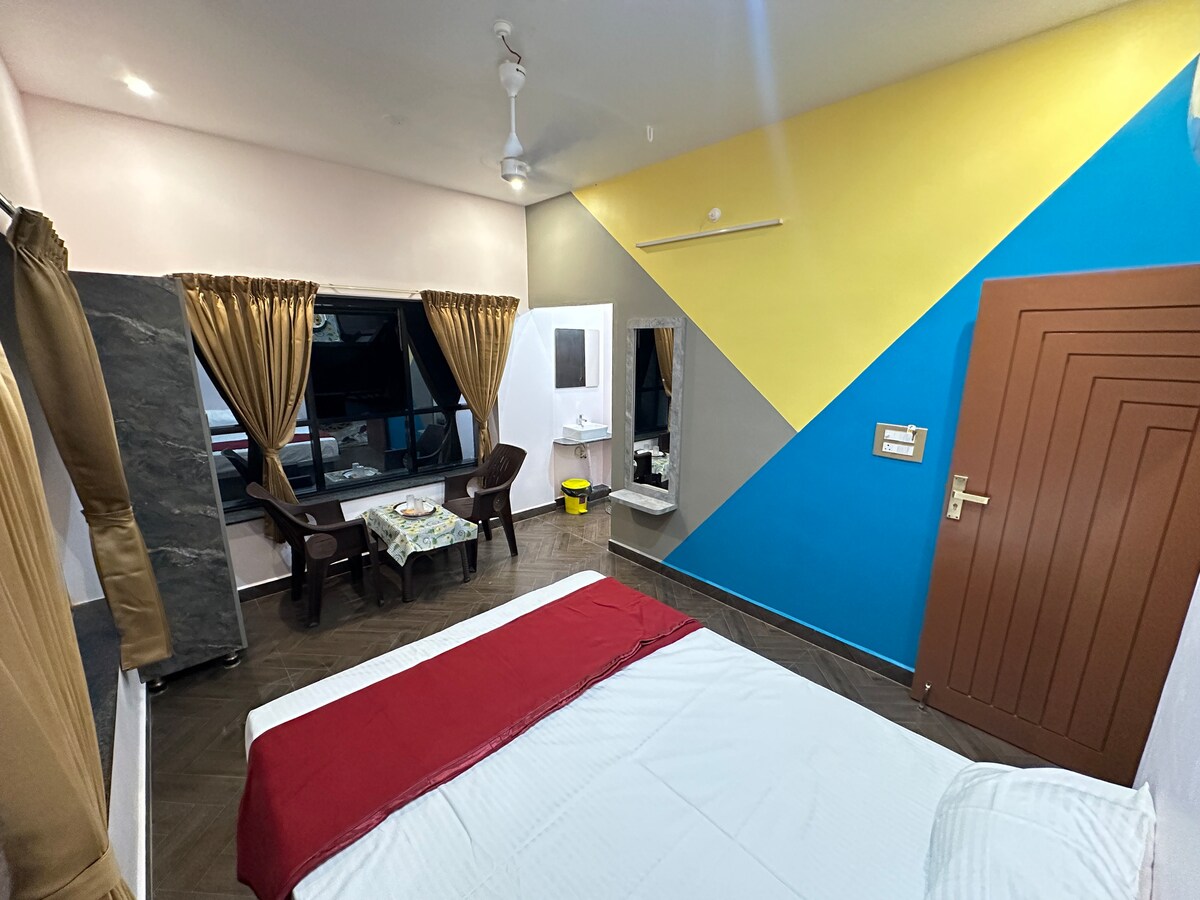 Ang mga Premium na Kuwarto ay Napakalawak na itinayo na may 225 SQ Feet , may Silid - tulugan na may nakakonektang Banyo , Ang Silid - tulugan ay may Dalawang Queen Bed at Bukod pa rito, ang Dalawang Extrabed ay maaaring Laid nang Komportable. Ang Lahat ng Kuwarto ay may Split Aircondition , A Huge Window is Fixed in all Rooms where you can see a Mountain view of Tiruvannamalai . Pinapayagan din ng 43 Inch SMART LED TV With Cable Channel Management ang OTT With Guest Subscription. Libreng WIFI na may mga Probisyon ng Inverter na nakakatulong sa panahon ng Pagkabigo ng Kuryente.