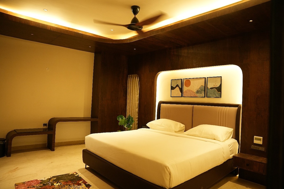 This stylish place is close to must-see destinations. Enjoy a premium and relaxing stay with modern comforts, spacious rooms, and serene mountain views, conveniently located just 5miutes from the sacred Tiruvannamalai Temple and Walkable distance to Central Railway Station and Bus Stand.