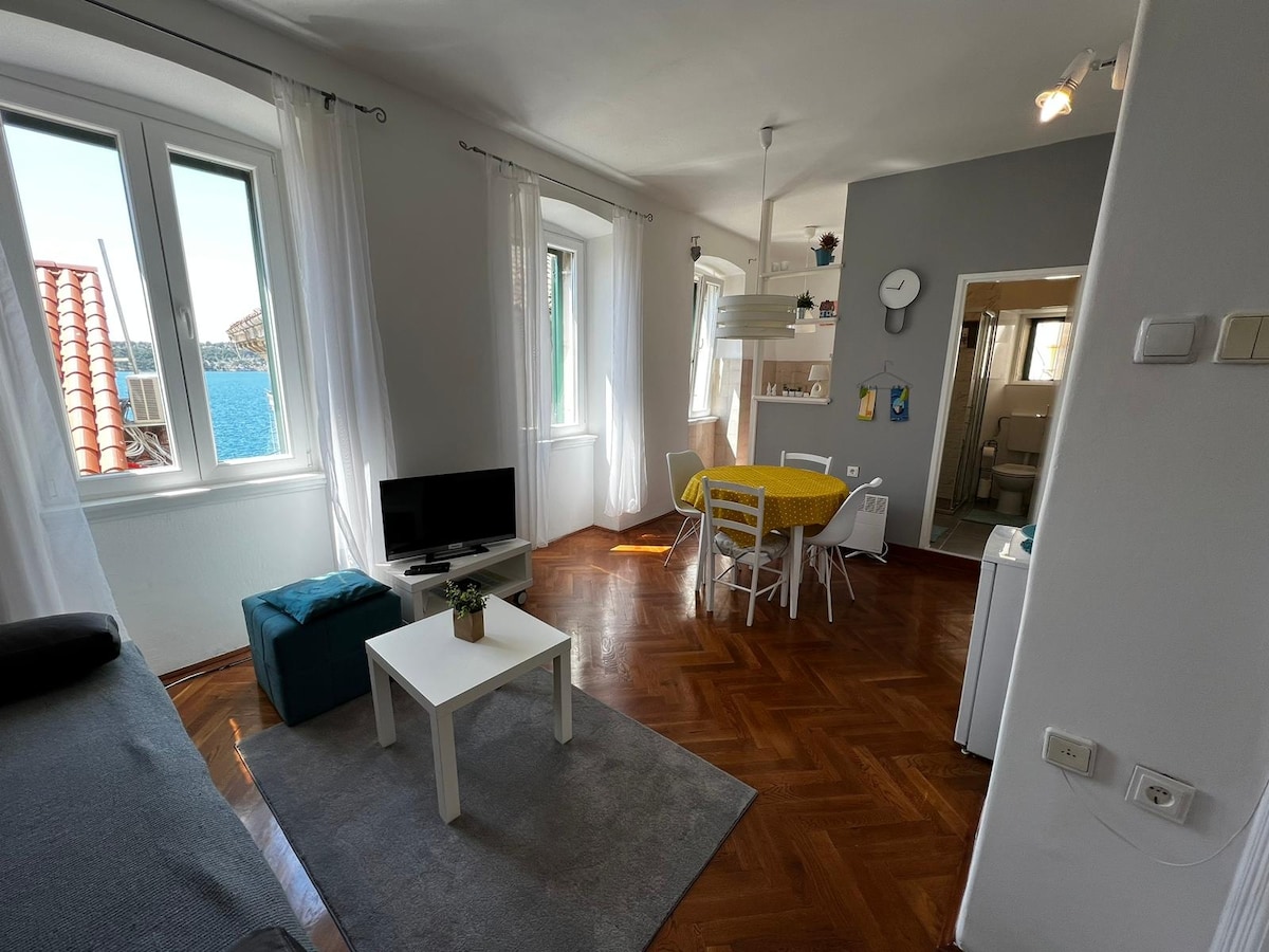 Studio Apartment Tisno consists of double bed, kitchenette, seaview terrace and bathroom (with shower cabin not bathtub). It is situated on the ground floor of a family house and it has private entrance. NO WASHING MACHINE Distance from the festival site is 15-20 minutes walk and short walk from the village center. No parties or events. Night peace. No outsiders.