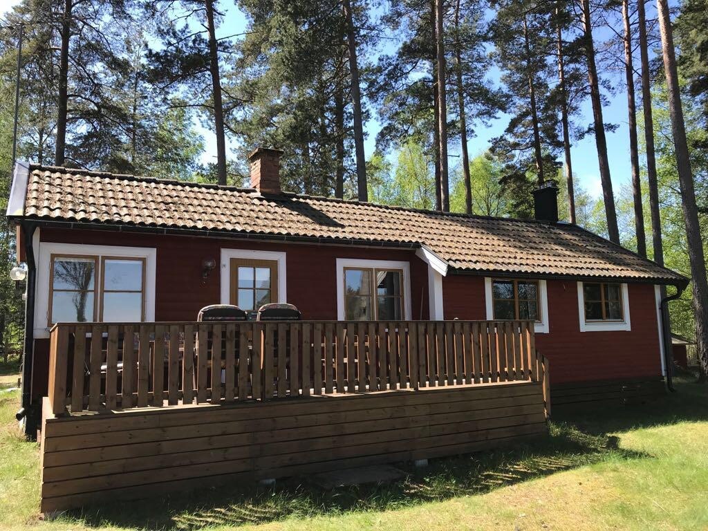 Fantastisk stuga med öppen planlösning, 90 kvm. Totalrenoverad 2022-24 med nytt modernt ljust kök, granitbänkar, diskmaskin, induktionsspis med ugn, micro. Trägolv i gran samt klinker i det vinterisolerade uterummet. Nytt badrum-golvvärme, tvättmaskin. Sjötomt med eget fiskevatten inkluderat - med kastspö eller metspö. Vedeldad badtunna direkt vid sjön. Stora härliga trädäck, vid huset samt direkt vid sjön, med nya trädgårdsmöblemang. Möjlighet att hyra kanot och roddbåt samt gratis cyklar.