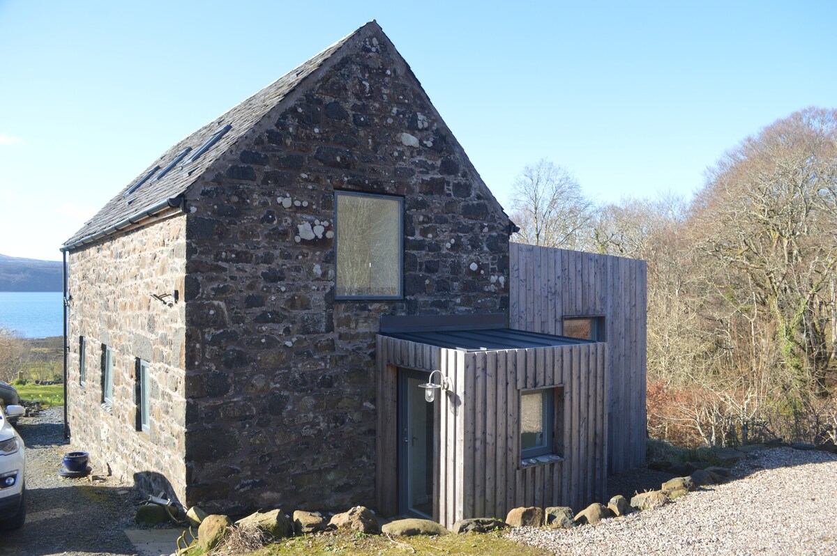 Mill House Steading is a contemporary conversion of a historic barn into a 2 bedroom architect designed home. The balcony overlooks the burn with views across the Sound of Mull to Tobermory. See countryfile series17 episode 7 to see the beauty of the landscape around us. The bay is perfect for watersports. The renovation was completed in March 2020 and provides stunning accommodation.