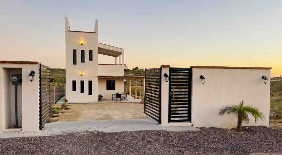Bienvenidos sean desde cualquier parte del mundo a este alojamiento en el corazón de Todos Santos, una opción ideal para tu proximo viaje. Cuenta con amplia terraza donde se puede apreciar el mar y la sierra, a unos minutos caminando del Centro, donde puedes visitar las galerías, restaurantes y el famoso Hotel California. Equipado para que tu escapada de diversion o de trabajo sea inolvidable. Contamos con estacionamiento privado y seguro y una tienda de conveniencia al cruzar la calle.