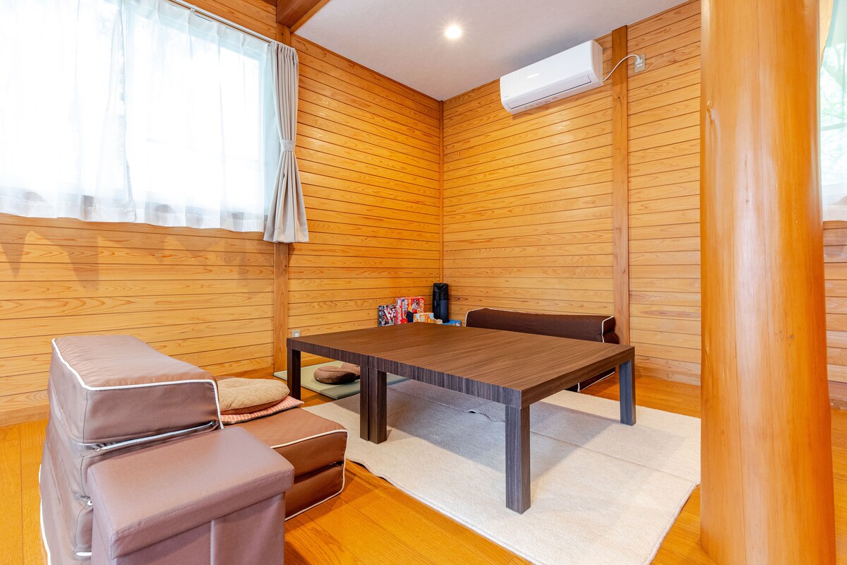 Ang Shinkirou ay isang hiwalay na bahay na may temang "wellness," na idinisenyo upang pahintulutan ang mga bisita na gumugol ng nakakarelaks na oras sa kalikasan. Eksklusibong inuupahan ang bahay, kaya angkop ito para sa mga pamilyang may mga bata at grupo. Puwede rin itong gamitin para sa mga pamamalagi sa negosyo. May espasyo para sa pag - eehersisyo sa unang palapag. Puwede kang magsanay sa exercise bike at abdominal machine. Gumawa kami ng mga hakbang laban sa mga insekto, ngunit dahil nasa kabundukan kami na napapalibutan ng kalikasan, patawarin ang ilang insekto mula sa pagpasok.