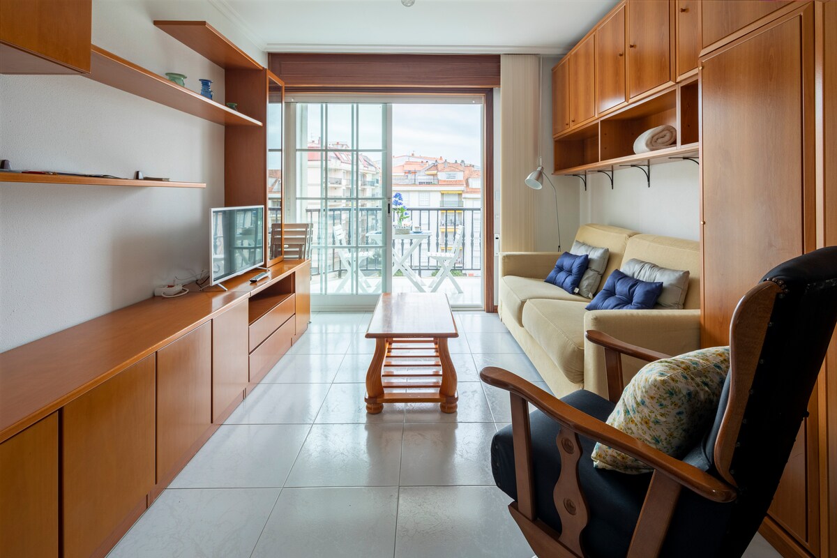 Acogedor apartamento a 50 metros de la playa.4 planta con ascensor.Consta de una amplia habitación y un salón con sofá cama matrimonial y una cama individual abatible que puede adaptarse y convertirse en otro dormitorio.En la zona del comedor también consta de otra cama abatible.Cuenta con terraza (con vistas al mar) plaza de garaje y trastero .Con desayuno incluido.Totalmente equipado y amueblado. Dispone de ropa de cama,toallas,secador de pelo, plancha,tabla de planchar,batidora, Dolce Gusto.