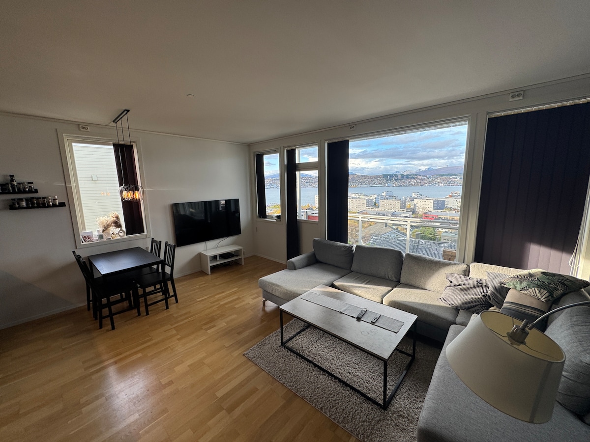 Magandang apartment. central na lokasyon, na may hindi kapani-paniwalang tanawin sa ibabaw ng Arctic Cathedral at Tromsoe, sala na may sofa bed, tv na may apple tv, dining area, kumpletong kusina. Super mabilis na wifi sa apartment. Maaari mong tamasahin ang hatinggabi ng araw sa tag - init o ang Northern Lights sa taglamig, na nakaupo sa terrace na may kumot. Kung mayroon kang kotse (paradahan ayon sa pag - aayos) Sa panahon ng taglamig, inirerekomenda naming magrenta ka ng kotse na may 4 wheel drive para makapagmaneho ka papunta sa bahay.