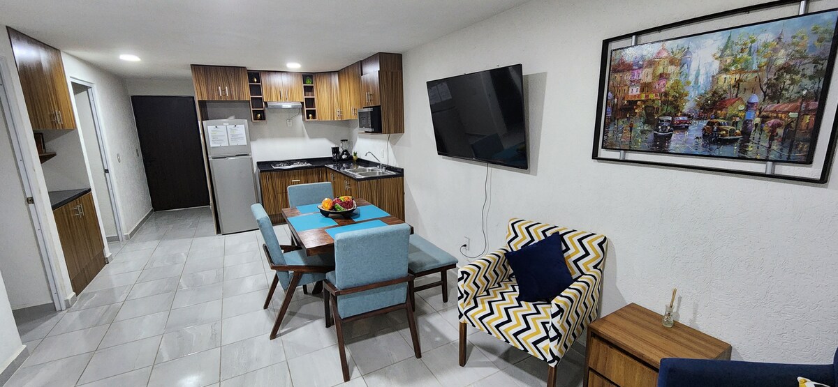 Maligayang pagdating sa aming kaakit - akit na retreat sa Tonala, isang natatanging destinasyon na kumukuha ng kakanyahan ng sining at tradisyon ng Mexico. Ang aming magandang apartment ay higit pa sa isang simpleng lugar na matutuluyan na may lubos na katahimikan at kaligtasan. Masiyahan sa dalawang kuwartong may balkonahe, 1 king bed 1 mat. at gumising sa pagitan ng malambot at komportableng mga sapin, at mag - enjoy ng almusal sa aming maliwanag na kusina, Alexa Maligayang pagdating sa iyong tuluyan na malayo sa bahay, kung saan niyayakap ka ng mahika ni Tonala sa bawat sulok!