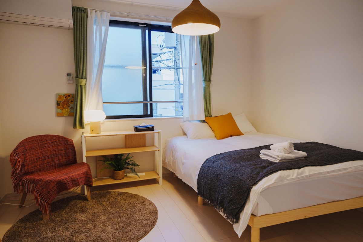 * Ang lawak ng kuwarto ay 70 square meters * Ang kuwarto para sa 4 na tao ay may 2 standard double bed (147 * 200 cm) Muji solid wood bed * Ang Japanese-style room para sa 4 na tao ay may 2 standard double bed (147 * 200 cm) na may Muji mattress * Maaaring magdagdag ng dalawang single futon sa open tatami room (2,000 yen para sa bawat dagdag na futon) Ang kuwartong ito ay may malawak na kusina at dining area, isang magandang lugar para sa buong pamilya na magtipon-tipon kapag naglalakbay. * Toto bathroom facilities, kumportableng bathtub, bidet toilet, washstand area, perpekto para sa hot bath pagkatapos ng isang araw ng paglalakbay para magpahinga, at maaari ka ring magkaroon ng kaginhawaan at kaginhawaan tulad ng sa bahay!