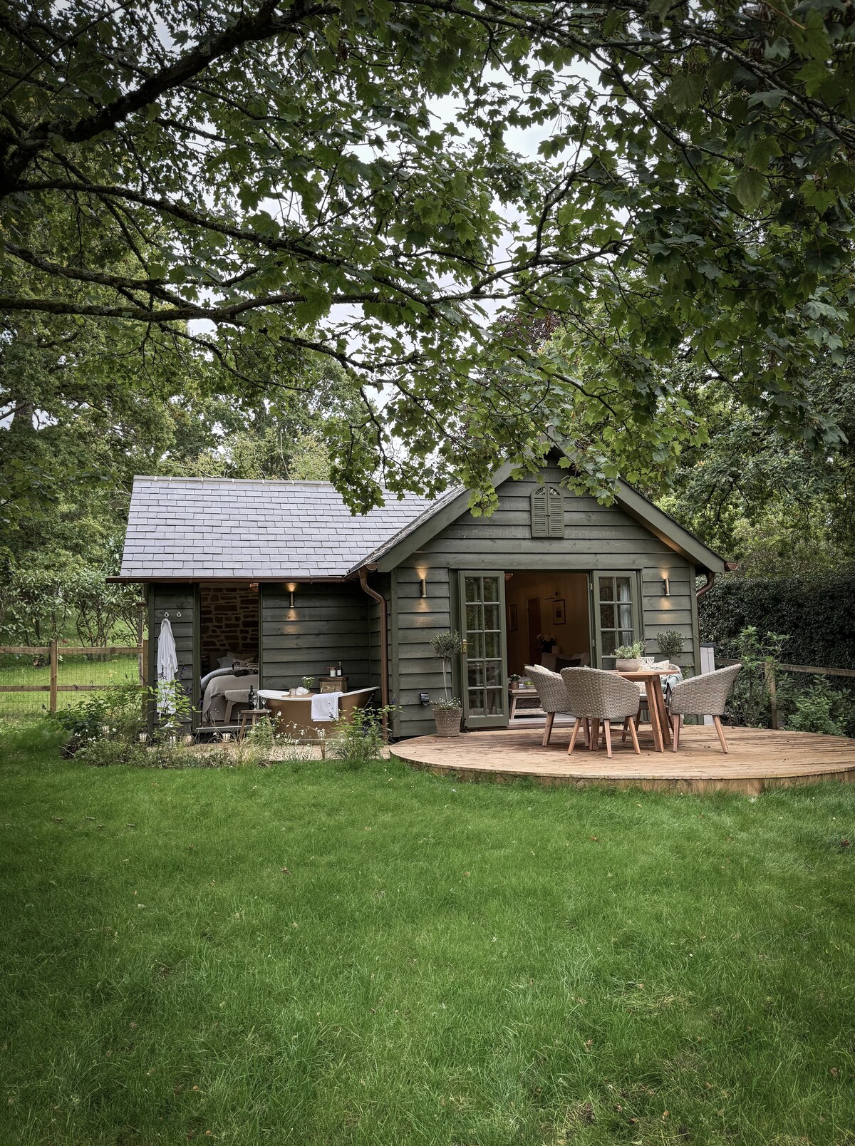 Muling makipag - ugnayan sa kalikasan sa hindi malilimutang 'Great Escape' na ito kung saan makikita mo ang tirahan ng masaganang wildlife sa mga liblib na kakahuyan na katabi ng River Wey na may kasamang mahusay na pangingisda. Inilagay ang mga bintana ng kubo para masiyahan ang mga bisita sa magagandang tanawin ng kakahuyan habang nakahiga sila sa kanilang marangyang King Size bed sa umaga. Kusinang kumpleto sa kagamitan, magandang shower room at flushing toilet, woodburner, malaking deck kung saan puwede kang kumain ng alfresco o mag - enjoy sa sarili mong pribadong hot tub.