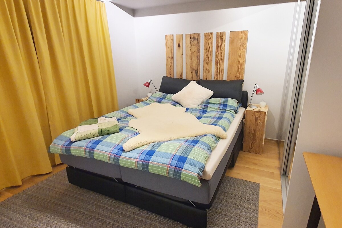 Pribadong kuwarto sa tahimik at de‑kalidad na tuluyang may 2 kuwarto. Puwede kong gamitin ang ikalawang kuwarto at makakapagbigay ako ng karagdagang desk para sa mga bisita. Mag‑enjoy sa malawak at maliwanag na open‑plan na sala. Maginhawang matatagpuan malapit sa dagat at Lindenpark Shopping Centre.