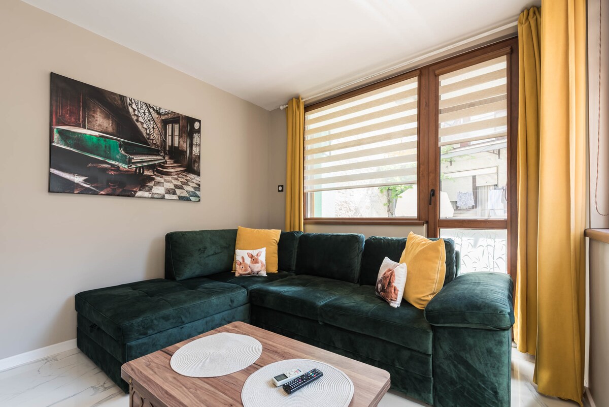 Maligayang pagdating sa aming komportableng one - bedroom flat, na may perpektong lokasyon na ilang hakbang lang ang layo mula sa makulay na sentro ng lungsod. Perpekto para sa mga mag - asawa o solong biyahero, nag - aalok ang aming apartment ng komportableng bakasyunan na may lahat ng amenidad na kailangan mo para sa hindi malilimutang pamamalagi.