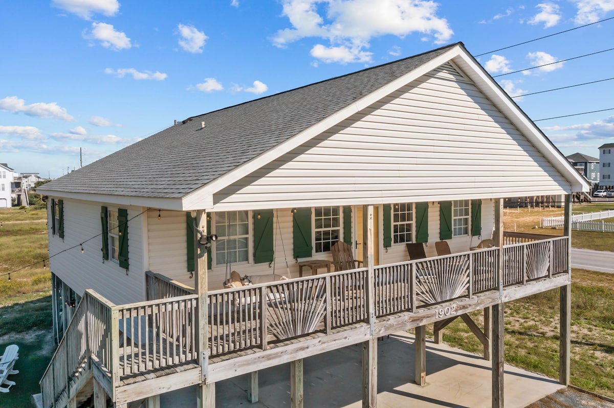 Ang kakaibang Surf City beach cottage na ito ay bagong inayos at nagsisilbing perpektong bakasyunan. Matatagpuan ito nang wala pang 1 milya papunta sa pier ng Surf City at mga restawran. Dalhin ang pamilya at mag - enjoy sa buhay sa beach sa 2nd row home na ito sa intercoastal waterway! Pagkatapos ng mahabang araw na pagbabad sa araw, banlawan gamit ang buong banyo sa labas at pagkatapos ay magluto sa kusina na kumpleto sa kagamitan. O gamitin ang malaking outdoor prep area at sunugin ang gas grill para gawin ang paborito mong BBQ meal.
