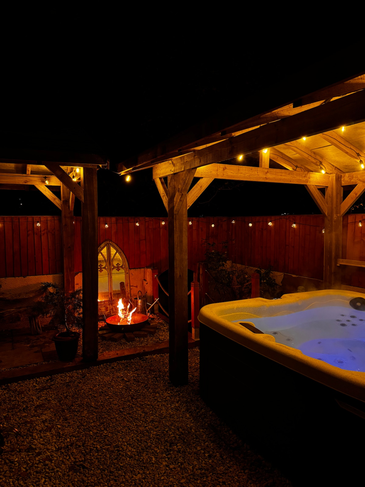 Nakakarelaks na naka - istilong studio na matatagpuan sa bundok na may kaakit - akit na paglalakad sa iyong pintuan. Ang Studio ay nakakabit sa aming smallholding gayunpaman mayroon kang sariling pasukan kasama ang pribadong paradahan at hardin. Pakitandaan na bahagi ito ng aming tahanan kaya mainam para sa pagrerelaks, mga walker/siklista o mag - asawa na gustong magrelaks ngunit hindi magsalo - salo, malakas na musika atbp, iginagalang namin ang aming mga kapitbahay at samakatuwid ang aming mga tahimik na oras ay 10pm - 6am. Available lang ang hot tub hanggang 9.30pm at tahimik na musika lang. *Walang alagang hayop*