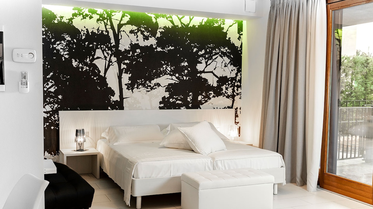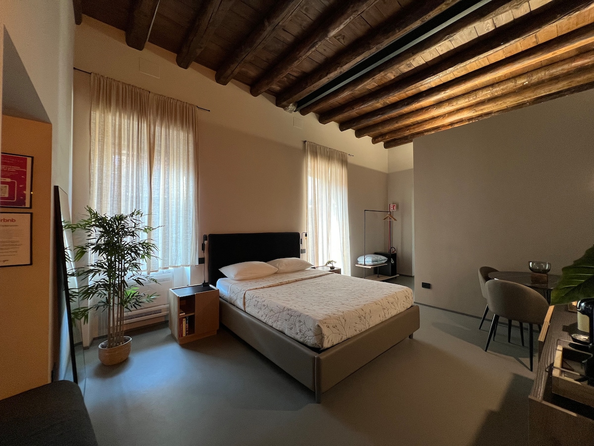 Magico trilocale ai piedi di città alta in un movimentato, ma tranquillo borgo. Si presenta su un unico piano: •Suite con bagno privato •Camera da letto con bagno esterno •Ampio soggiorno con divano letto e sala da pranzo •Cucina moderna con piano snack Il prezzo base include 1 letto matrimoniale ogni 2 ospiti. Se si desiderano letti separati, è previsto un piccolo supplemento di 15 €. Dal 15 gennaio apre la nuova SPA immersiva a Chorus Life