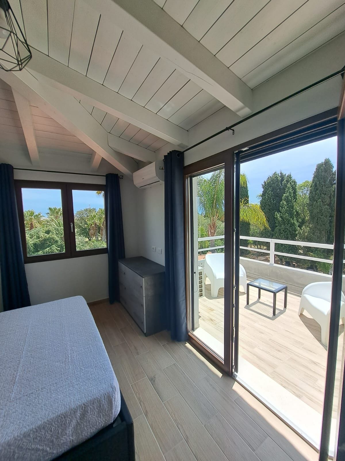 Naka - air condition na apartment na may dalawang silid - tulugan, kumpleto sa lahat ng kaginhawaan at komportableng paradahan sa loob ng pribadong patyo, sa tabi mismo ng iyong pinto! Sa malapit na lugar, maraming serbisyo tulad ng mga supermarket, botika, bar, at restawran. 15 minutong biyahe ang pinakamalapit na dagat. 600 metro lang ang layo ng istasyon ng tren. Ang estratehikong lokasyon nito, kasama ang lahat ng amenidad na iniaalok nito, ay ginagawang mainam na solusyon ang tuluyang ito para sa lahat ng uri ng pamamalagi.