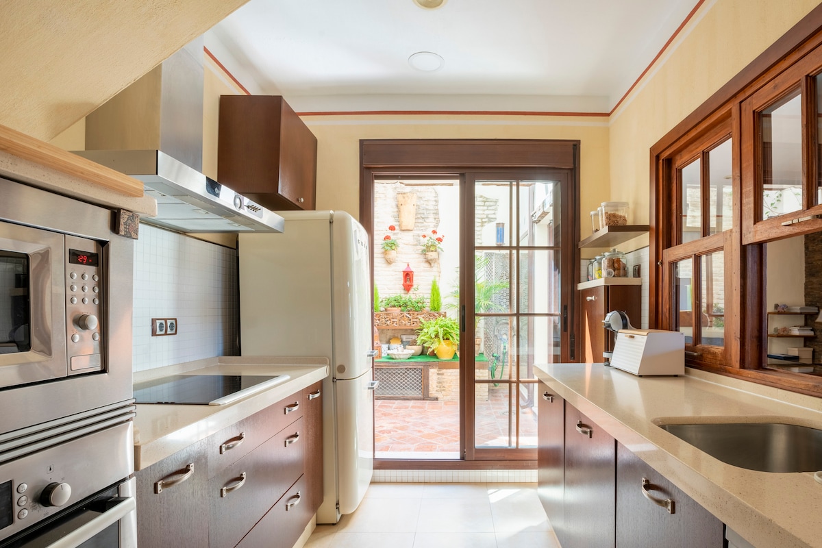 Magandang naibalik na bahay mula ika -18 siglo, na inilagay sa pinaka - buhay na bahagi ng lungsod. Binubuo ito ng tatlong palapag. Sa huli ay may salt water swimming pool kung saan masisiyahan ka sa maiinit na araw na tipikal ng aming rehiyon. Mayroon ding barbacue at komportableng kumain sa o magbasa. Ito ay ang perpektong lugar upang magrelaks, sa parehong oras na magkakaroon ka ng pinakamahusay na pagkakataon upang pahalagahan ang tunay na esence ng Andalusia.