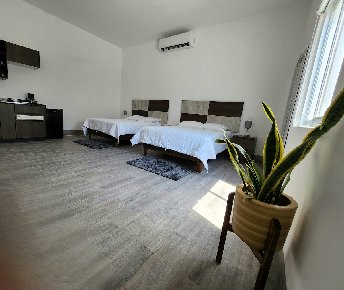 Ang komportable at gamit na loft para sa hanggang 2 tao, ay maaaring 4 na karagdagang gastos. Matatagpuan sa isang gated na komunidad na may pribadong pasukan sa isang bahay na airbnb din at espasyo para sa pribadong paradahan. Ang lokasyon nito ay walang kapantay, malapit sa mabilis na mga kalsada at may access lamang ng ilang hakbang sa: Starbucks, parmasya, bangko at iba 't ibang mga restawran. Nilagyan ng kitchenette, coffee maker, immersion blender, bar, closet, 40” mini - split, hot/cold, burrito at plantsa.