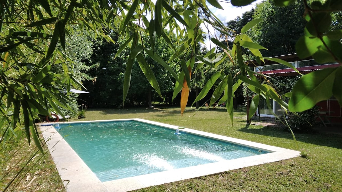 Magandang 4 na silid - tulugan 4 na banyo na bahay, kalan na gawa sa kahoy, kuryente at hangin hanggang sa malamig na init at mga bentilador Kumportable at pinalamutian nang mainam sa lupain na 5 libong metro kung saan nakatayo ang pool na 13m x 4m. Maliwanag na kapaligiran, na may malalaking bintana na may magagandang tanawin ng kanayunan at mga kabayo na nagpapastol Isang mapayapang lugar na may mga polo court at clubhouse kung saan nararamdaman mong nasa kanayunan ka. Matatagpuan ito sa loob ng ligtas na country club, isang oras mula sa Buenos Aires