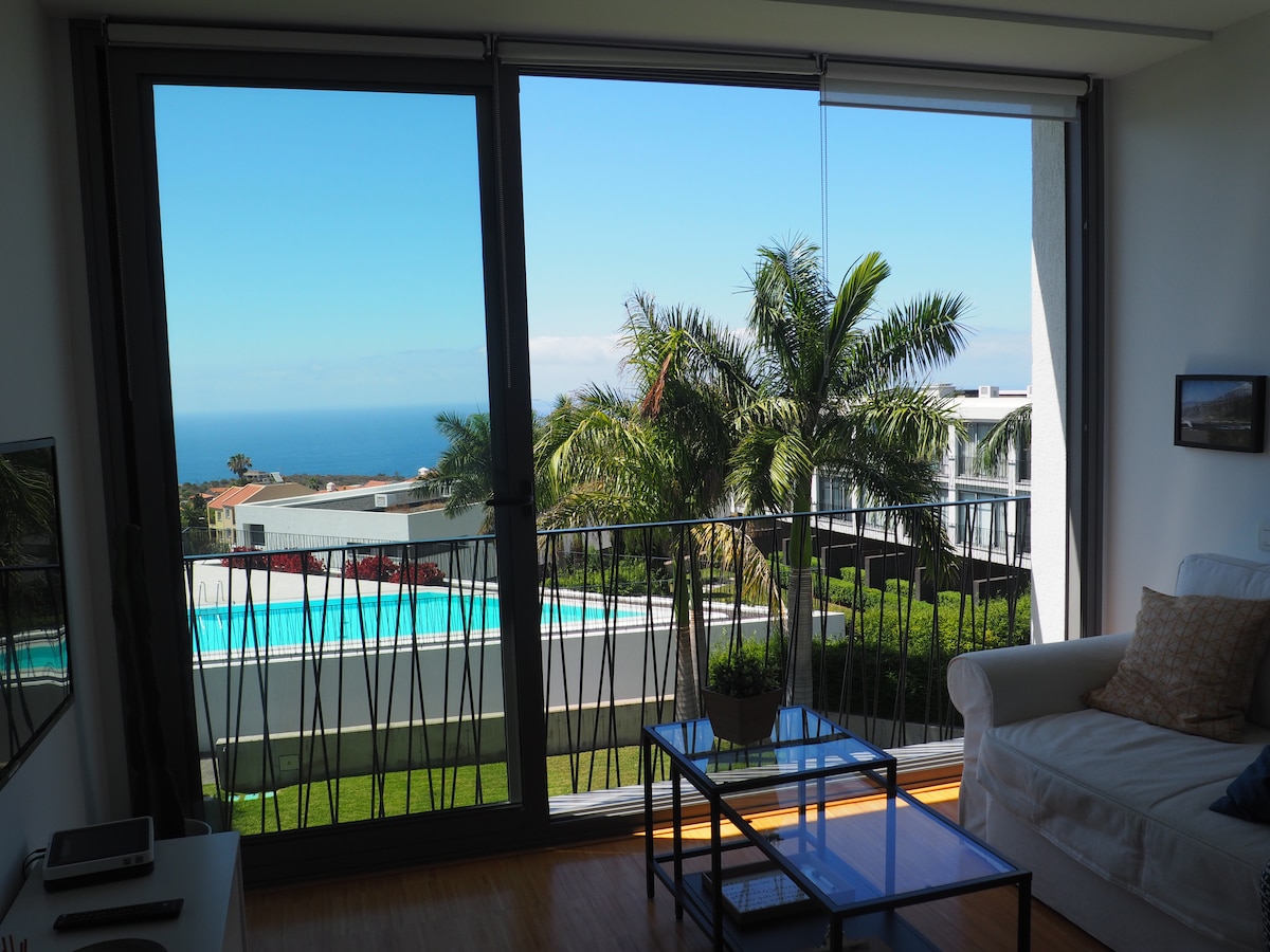 Modern and bright designer apartment in La Quinta, Santa Úrsula. Spectacular views of the sea in a serene environment where the use of natural fibers is privileged along with warm and relaxing colors. Swimming pool with solarium and sun loungers available. Open all year round (not heated). Extra large bed 180 x 200 cm and selection of pillows. Air conditioning in main living room. Fiber Optic Internet and work desk. Personalized attention from the host :) We designed it with love!