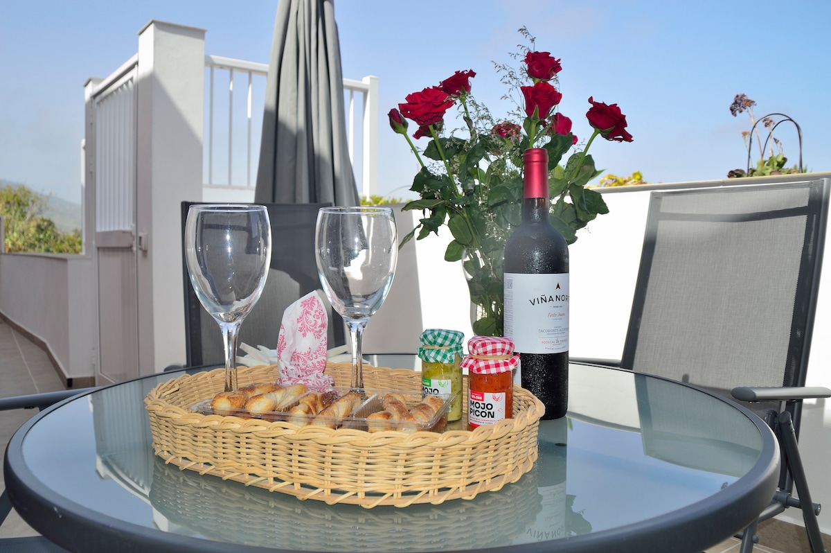 Gran ático situado en pleno corazón de los viñedos de La Victoria de Acentejo, un lugar un tranquilo. Cuenta con una terraza con impresionantes vistas a la costa de Tenerife y el Teide. La vivienda, con 1 dormitorio y un salón-comedor con un amplio sofá-cama, dispone de baño con ducha efecto lluvia y cocina con todas las comodidades. La ubicación es ideal para unos días de descanso y para explorar Tenerife, pues se encuentra cerca de los núcleos urbanos de La Laguna y Puerto de la Cruz.