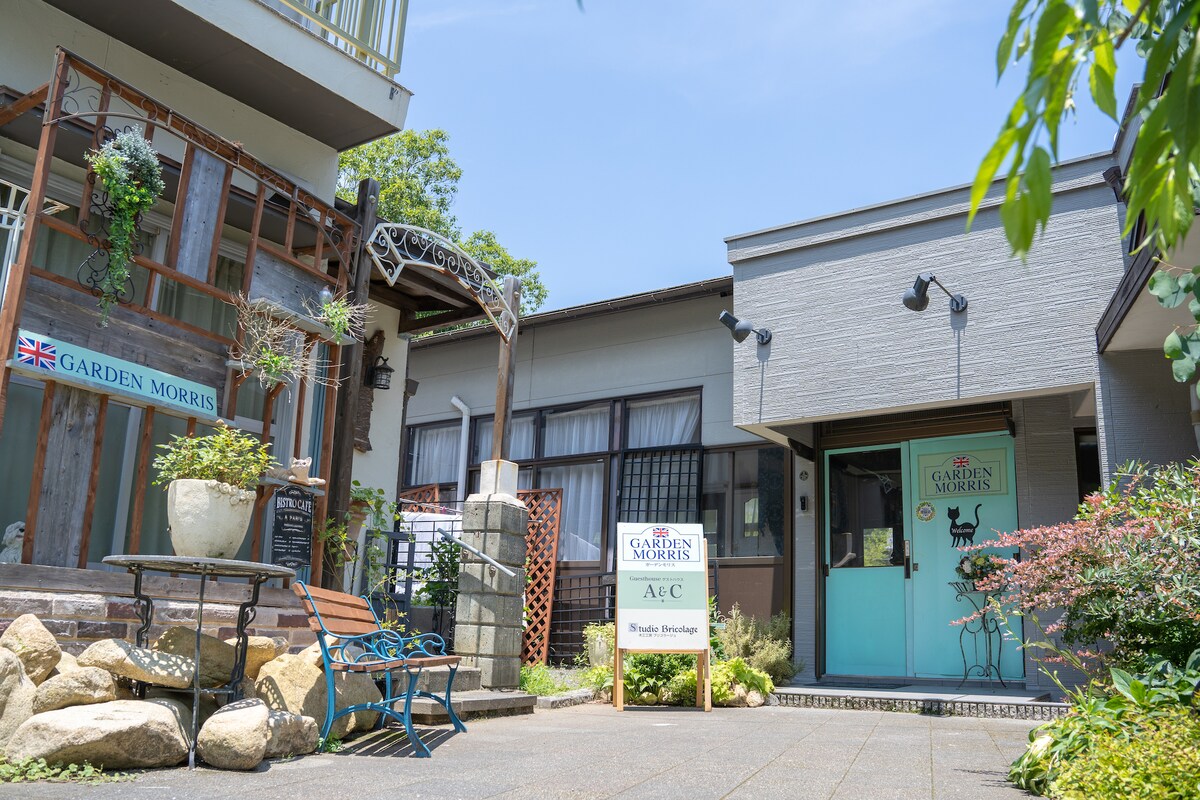 Binuksan ang guesthouse na mainam para sa alagang hayop noong Abril 2023/ ▶Pribadong Villa , limitado sa isang grupo kada araw ▶Malalaking aso at pusa ay malugod na tinatanggap pati na rin ang mga maliliit na aso Available ang ▶almusal at hapunan sa katabing cafe! Napapalibutan ng mayamang kalikasan, isang pribadong tuluyan ang aming pasilidad na may isang grupo lang kada araw. Masisiyahan ka sa sandali ng katahimikan at pagpapagaling. Umaasa kaming masisiyahan ka sa hindi malilimutang pamamalagi.