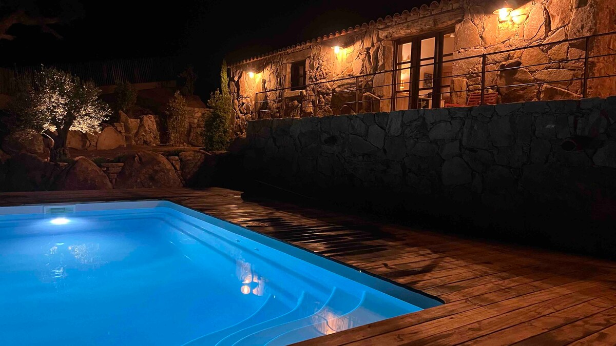 Tradisyonal na bahay ng Corsican na inspirasyon ng mga sinaunang kulungan ng tupa sa bato at kahoy. Modernong kaginhawaan at heated pool sa gitna ng maquis. Tahimik at tanawin ng bundok Binubuo ito ng sala na may maliit na kusina, sala at fireplace at 2 silid - tulugan na may shower room. Dinadala nito ang lahat ng modernong kaginhawaan na kailangan May perpektong kinalalagyan: sa pagitan ng Porto - Vecchio at Bonifacio, Malapit sa pinakamagagandang beach ng sukdulang timog ng isla. Hindi malayo sa mga daanan ng pamana at mga lugar na dapat makita