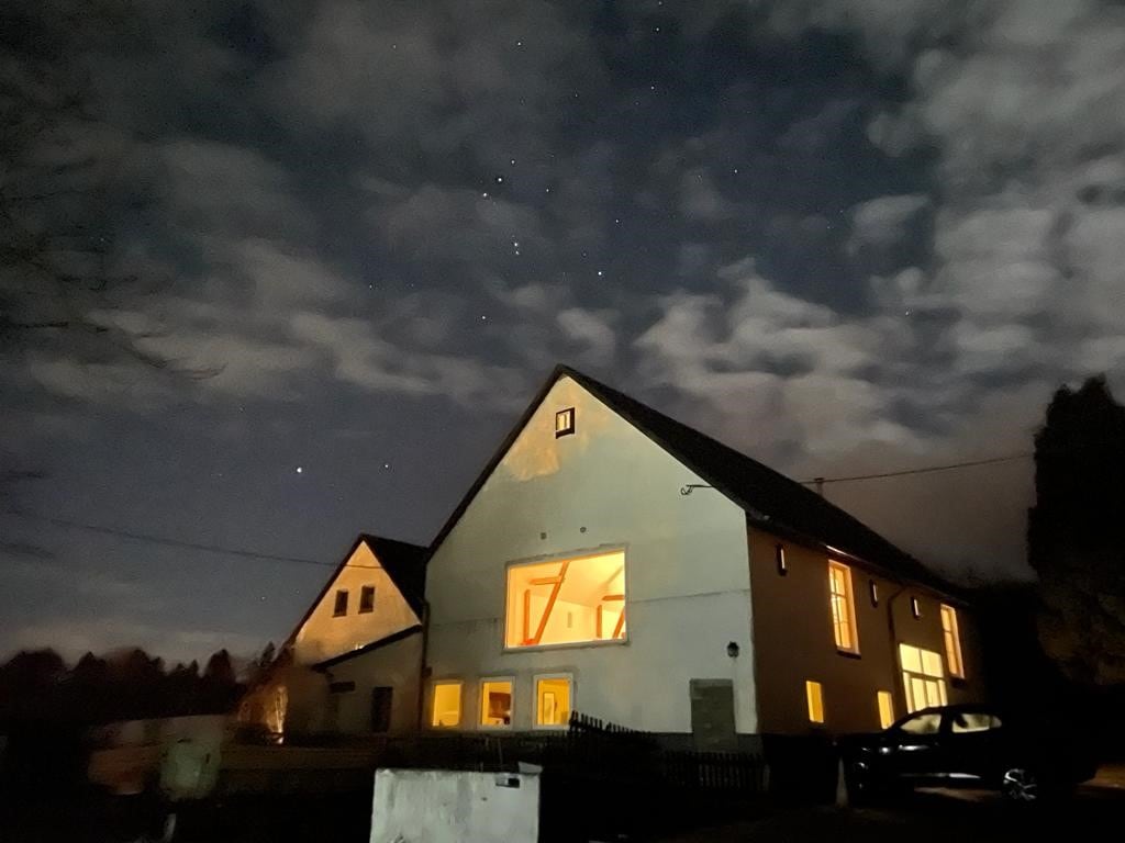 The wooden house is suitable for families and friends with up to 10 adults. The accommodation is located between the "Maare" (volcanic lakes) in the Volcanic Eifel near the Nürburgring and offers: Sauna for 5 people, 2 winter gardens, one with a pop-up pool, outdoor wood heated hot tub, fire pit, play area, trampoline, fitness equipment in the house, table soccer, table tennis in the large double garage, Netflix, wallbox for electric cars. 2 baby travel cots and 2 high chairs are available.