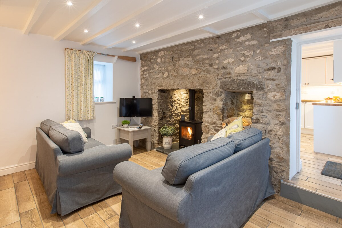 Magandang hiwalay na cottage na bato sa tahimik na lokasyon na may paradahan sa labas ng kalsada at 5 -10 minutong lakad lang papunta sa nakamamanghang Trearddur Bay beach. Mayroon kaming kamangha - manghang Wi - Fi na may smart TV, komportableng log burner at buong central heating, na ginagawang perpekto rin ang cottage sa mga malamig na buwan. Isang buong banyo na may paliguan at over head shower, malaking TV sa kuwarto at isang nakapaloob na pribadong lugar sa likod ng cottage para umupo at mag - enjoy ngunit ligtas din kung gusto mong isama ang iyong apat na binti na kaibigan.