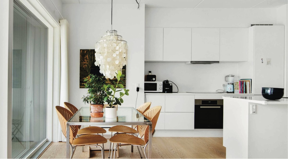 May kalidad at kalinisan, ang waterfront Copenhagen apartment na ito ay matatagpuan sa Nordhavn, mga 5 minuto sa pamamagitan ng metro papunta sa sentro ng lungsod (Nordhavn Station sa loob ng ilang minutong lakad). 70 sqm na may isang silid - tulugan (double bed / dalawang single), banyo, kusina, tirahan at kainan. Ang balkonahe na nakaharap sa kanluran ay perpekto para sa lounging sa ilalim ng araw at sa tabi ng mga daluyan ng tubig na masigla sa mga aktibidad sa libangan. May mga restawran, boutique, at supermarket ang Nordhavn at may pampublikong swimming zone at rooftop fitness sa malapit.