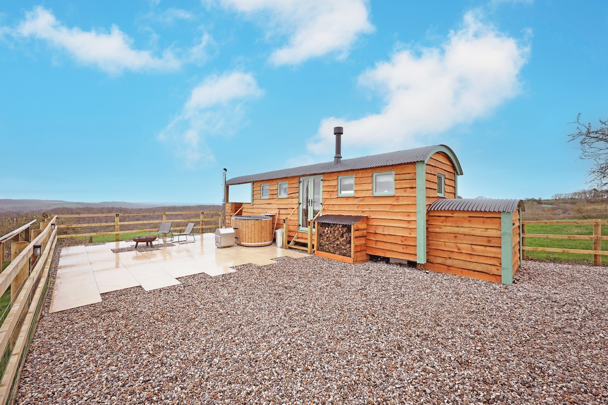 Magbakasyon sa aming romantikong shepherd's hut na Cockapoodle View, isang marangyang bakasyunan para sa dalawang tao sa gitna ng Staffordshire. May kumpletong privacy ito at may komportableng higaan, kumpletong kusina, at magandang banyo. Sa labas, magbahagi ng mga di‑malilimutang sandali sa pribadong hot tub na pinapainit ng kahoy o kumain sa ilalim ng mga bituin na may mga nakamamanghang tanawin ng kanayunan. Idinisenyo para sa pagmamahalan, pag-iisa, at pagpapahinga, ang aming retreat ay ang perpektong setting para sa mga anibersaryo, pagdiriwang, o simpleng pagkakasama.