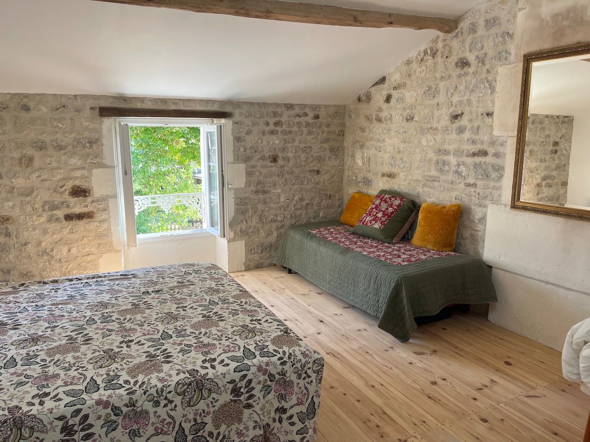 Nous vous proposons cet ancien moulin rénové, en plein Jarnac, perché sur la Charente, au calme, traversant et très lumineux ; décoré avec soin offrant vues uniques sur l’eau et le parc du château notamment depuis une belle terrasse et balcon. Comme sur un bateau, la maison offre tout le confort utile, à deux pas de toutes les commodités et commerces du centre-ville. Vous êtes à 10mn à pieds de la Gare Idéal pour séjour détente ou pour une mission pro. WIFI disponible pour travailler au calme.