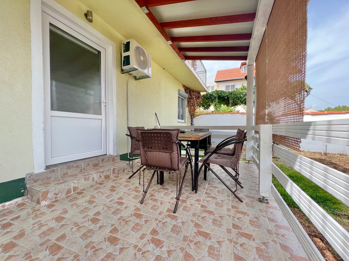 Apartment is equipped with tv, FREE Wi-Fi,AC and backyard basketball court. The apartment has a bathroom with a tub.There is a double bed in one and a double bed with an extra bed in another bedroom. In the living room there is a sofa for 2 persons.The apartment has a balcony with beautiful view over the sea and Kornati islands. The apartment is located on the first floor, has its own free parking, is 15 min. walk from the center and about 2 min. from the sand beach Slanica - Great location.