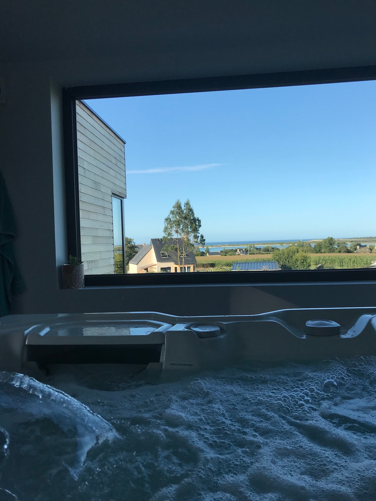 La maison d’Eugénie construite en bois en 2021 est idéalement située sur la commune de Goulven, face à la baie et sa réserve Ornithologique classée natura 2000.En suivant le Sentier de randonnée sur 2,4 km vous découvrirez le site de la maison des Dunes et les plages de Kerema. La maison offre une magnifique vue mer sur la baie de Goulven/espace jacuzzi vue mer avec douche à l’ italienne. La pièce jacuzzi est intégrée à la maison et l’accès se fait par l’intérieur où l’extérieur. terrasse sud