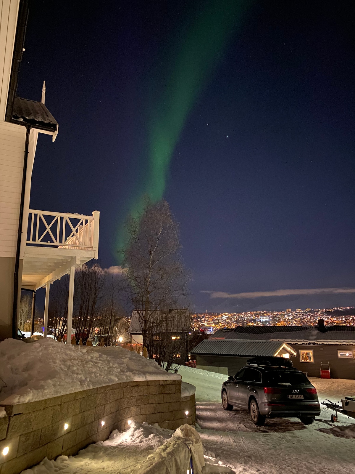 This house looks like a little cathedral, and lies only a five minutes walk from the centre of Tromsø. Large windows in the front gives a magnificent view of the city, the sea and the Mountains. The house was finished in 2019. We have choosen exclusive materials and design furniture. You’ll see that it’s made by heart. Helga, the host, lives in the house next door, and is readily available. This is the perfect place to stay in Tromsø. Welcome!