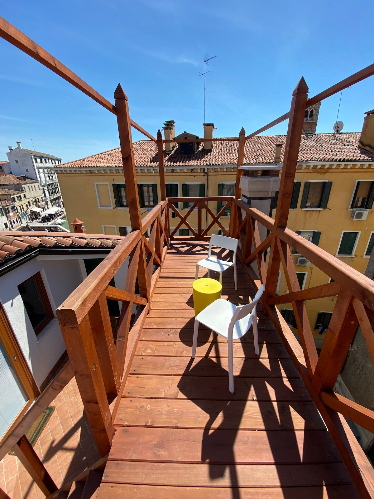 Ang pinainit na sahig na gawa sa kahoy at ang sala na may mga nakalantad na sinag ay ginagawang kaaya - aya ang tuluyan. Sa terrace sa sahig, magkakaroon ka ng tanghalian at hapunan sa labas sa mga bubong ng Venice. Alilaguna Motorboat AIRPORT - S. STAE (meeting point). Ang S. Stae ay stop no. 5 sa Grand Canal. Sa iyong pagdating, dapat bayaran ang buwis ng turista sa Munisipalidad na katumbas ng: € 4.00 bawat tao kada gabi ng pamamalagi; € 2.00 para sa mga kabataang nasa pagitan ng 10 at 16 taong gulang (hindi pa nakukumpleto)