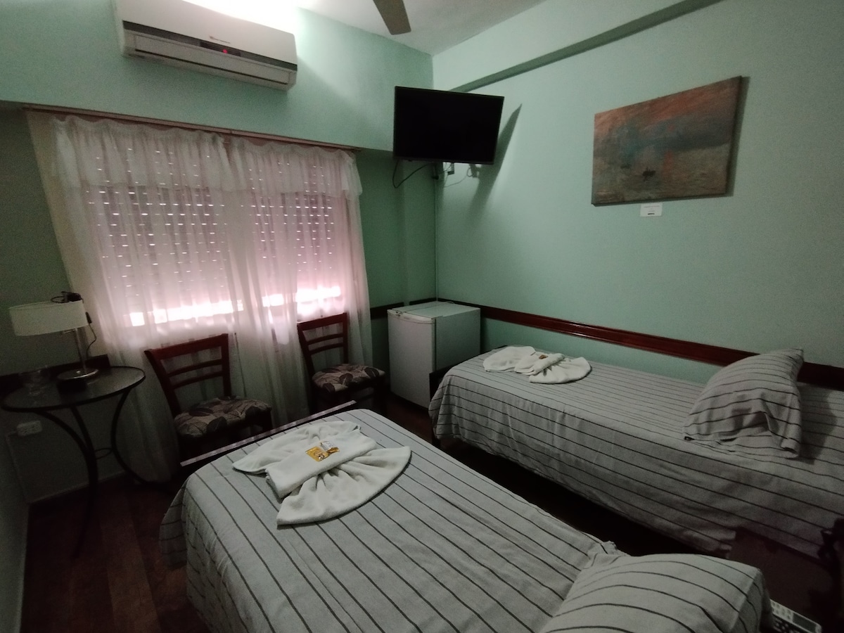 Komportableng kuwarto na may pribadong banyo sa loob ng hotel sa Recoleta, na may pribadong refrigerator, WiFi, 5 bloke mula sa Shopping Abasto, 7 bloke mula sa Alto Palermo, 3 bloke mula sa Universidad de Palermo, 7 bloke mula sa Universidad Tecnológica Nacional at Facultad de Medicina y Ciencia Económicas. Madali at maginhawang access sa lahat ng Capital Federal.