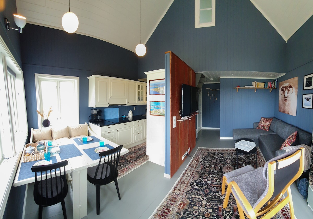 Binubuo ang flat ng buong ground floor ng isang maliit na farmhouse at may pangunahing silid - tulugan na may ensuite, silid - tulugan (gumagana bilang pangalawang silid - tulugan kapag may higit sa dalawang bisita), kusina at pangalawang banyo. Payapa ang paligid at puwede kang pumarada sa labas mismo ng pinto. Sa ilang partikular na oras ng taon, maaari kang makakita ng elk o cranes. Sa tag - araw, ang mga baka ay nagpapastol sa mga kalapit na bukid; ang tradisyonal na kamalig ay isa na ngayong sentrong pangkultura, na pinapatakbo ng Fjøsakademiet.