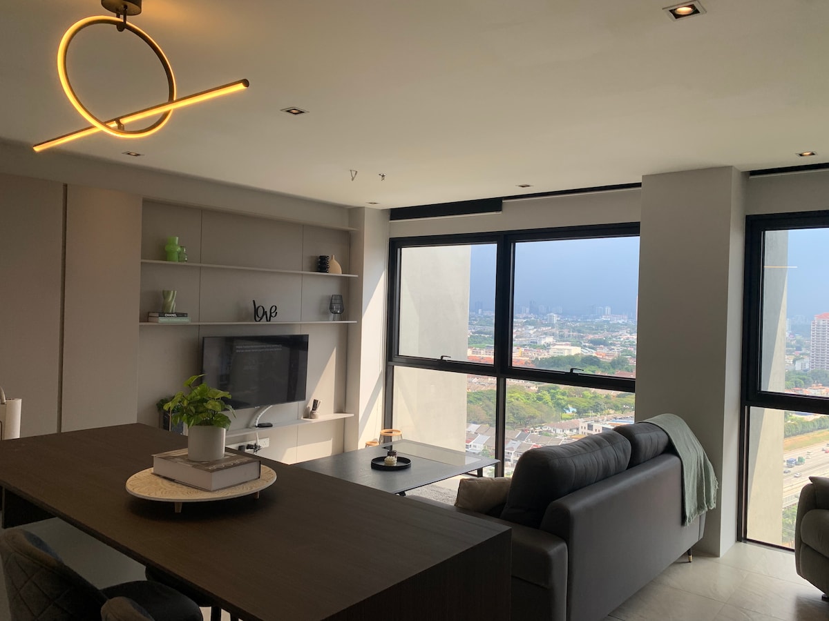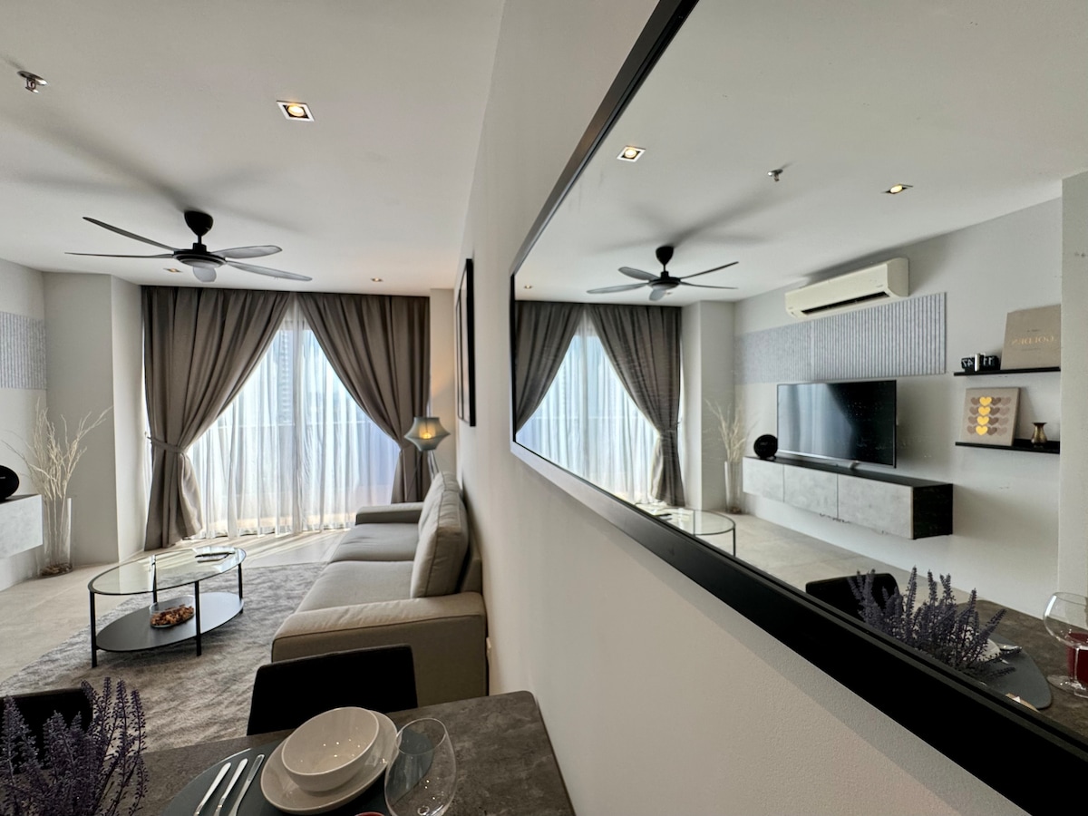 Nakaranas ng 5 star na marangyang pamumuhay sa espesyal na dinisenyo na suite na ito na matatagpuan sa gitna ng Petaling Jaya, na konektado sa lahat ng kailangan mo;- mga shopping mall, The Mrt, grocers, restawran, cafe, bar, sinehan, pangalanan mo ito! Malinis at maluwag ang apartment na ito na may 24 na oras na seguridad. Mainam na matutuluyan para sa mga biyahero, layunin ng negosyo, at pamilya. I - book ang iyong staycation sa amin! sa pamamagitan ng MRT - 30 min sa Kuala Lumpur (KL) - 5 min sa Ikea - 7 minuto sa 1 Utama Shopping Center