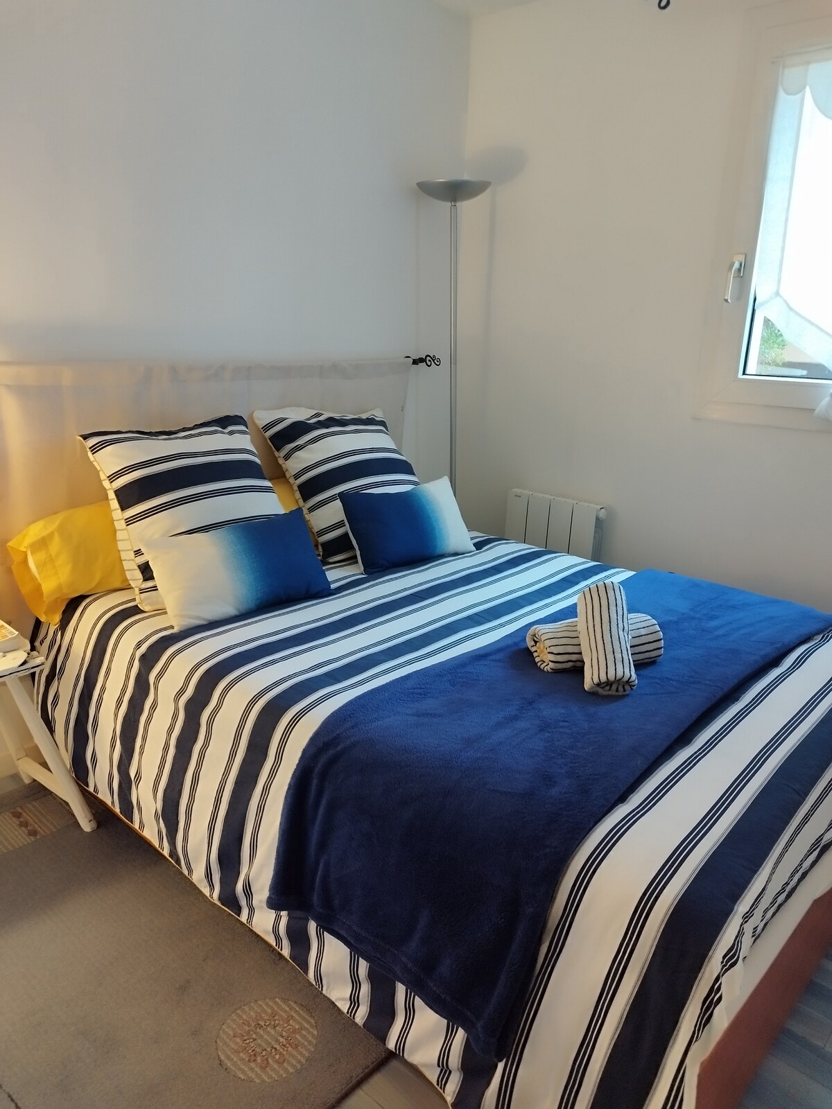 Sa tahimik na tirahan na may pribadong paradahan, ang malaking studio na ito na 25m2 na na - renovate noong Mayo 2017 na may hiwalay na kusina at balkonahe sa timog - kanluran, ay ang perpektong lugar para sa isang romantikong pamamalagi para sa 2 o kasama ang isang pamilya na may isang bata. Matatagpuan 10 minutong lakad mula sa sentro, 500 metro mula sa beach at 150 metro mula sa bagong aquatic complex. studio na may kumpletong kagamitan May mga linen: linen sa higaan, tuwalya, tuwalya sa tsaa... Makakakita ka rin ng almusal sa lugar sa umaga.