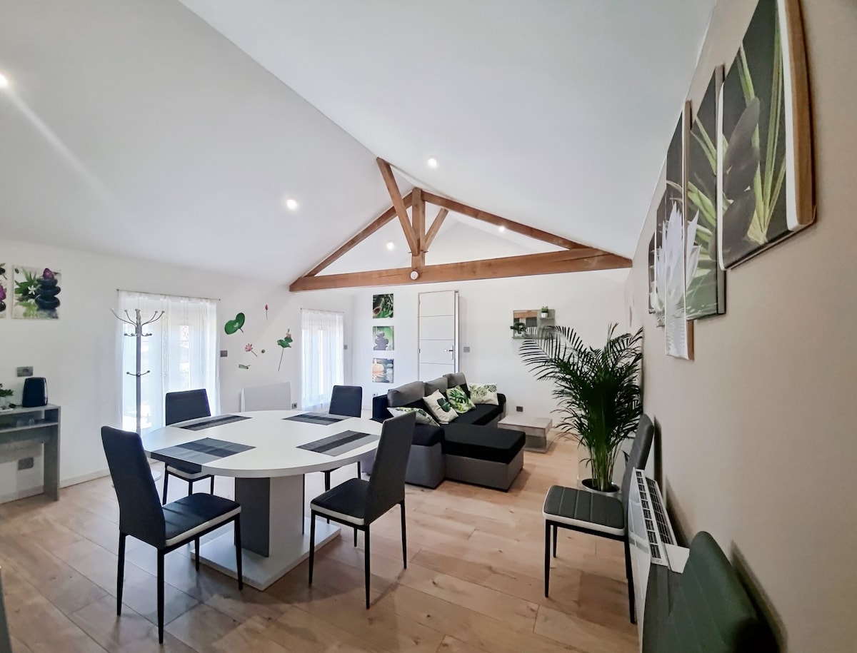 Medyo katulad ng Rooftop ng Troyes ang "Le Perchoir", at walang iba pang matutuluyan na nag - aalok ng nakamamanghang tanawin ng makasaysayang sentro :) Mahuhumaling ka sa mga serbisyo ng apartment na ito na may magandang dekorasyon at kagamitan! ☆ Panoramic view ng sentro ng lungsod ☆ Matatagpuan 100 metro mula sa istasyon ng tren 100 metro ang layo ng sentro ng ☆ bayan mula sa apartment ☆ 4K projector Mga ☆ high - end na pagtatapos ☆ Simmons bedding 160x200 ☆ High - end na TV at sound system ☆ Mga tindahan na 1 minuto ang layo Kailangan mo ba ng impormasyon? Makipag - ugnayan sa akin :)