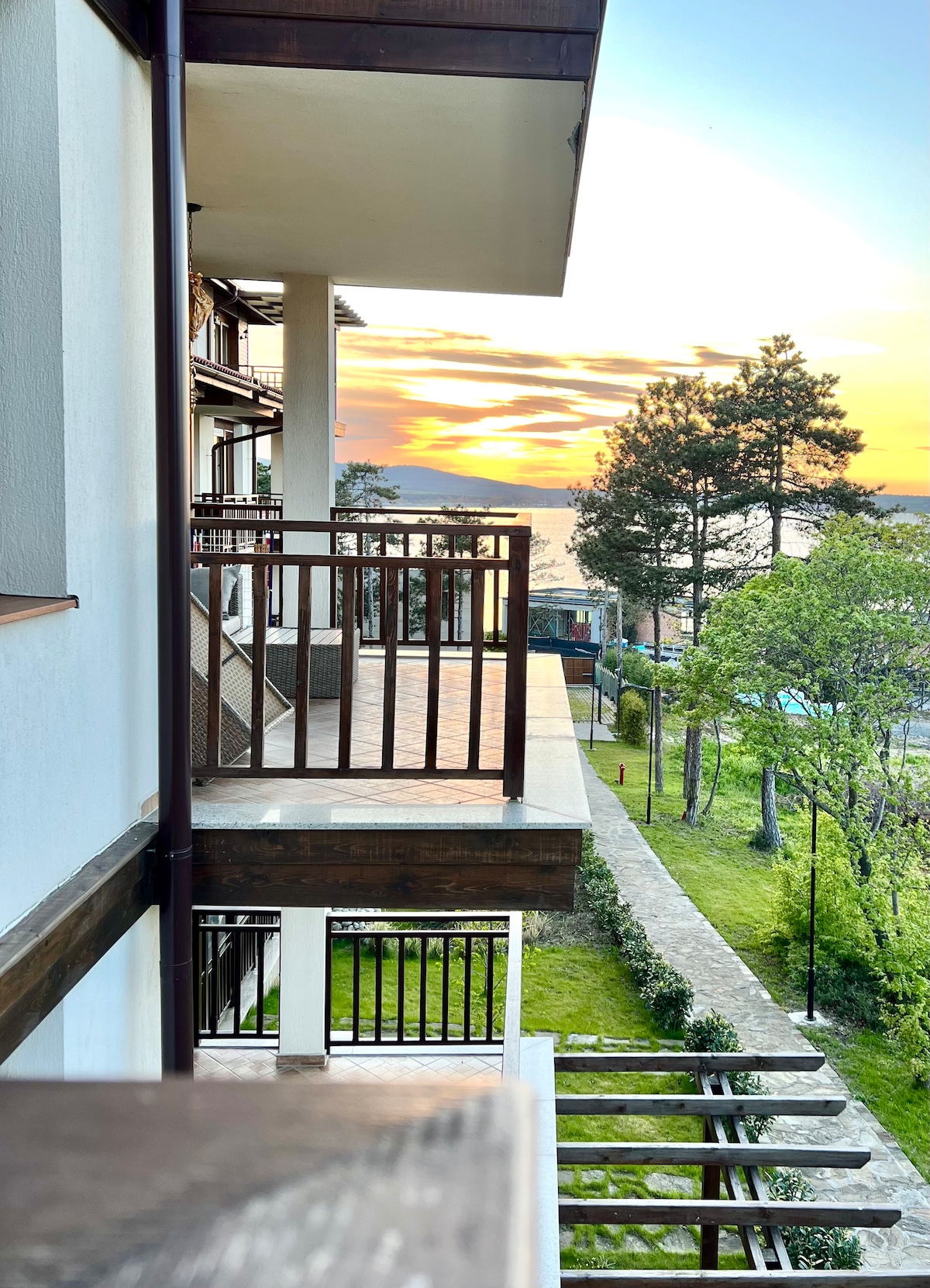 Tangkilikin ang iyong bakasyon sa tabing - dagat sa aming apartment sa gated complex Santa Marina sa Sozopol. Ang complex ay may 5 pool, 3 restaurant at bar, pastry shop na may palaruan ng mga bata, tennis court at football field, wellness center, outdoor at indoor gym, grocery at iba pang grocery store, palaruan, medical center, at marami pang ibang serbisyo. Hindi pinapayagan ang mga kotse sa nayon, at isinasagawa ang panloob na transportasyon sa pamamagitan ng mga de - kuryenteng trolley at minibus.