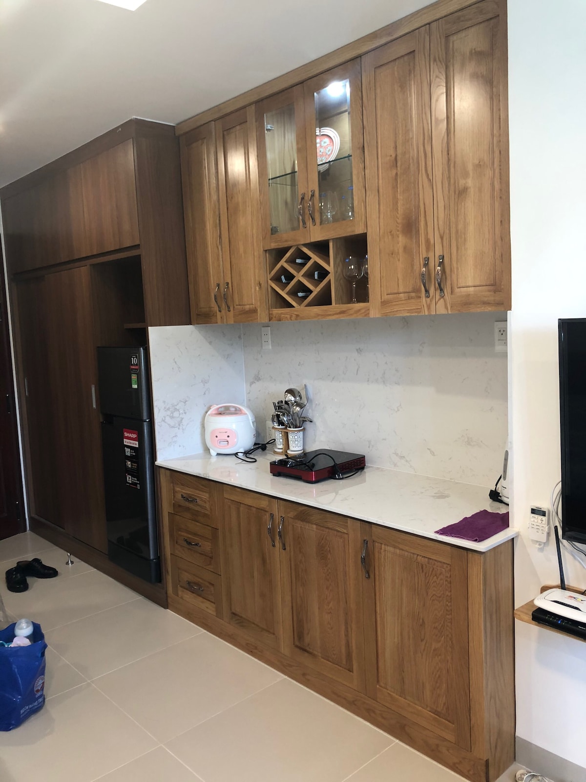 Our apartment has 1 living room, dining space, 1 bedroom (1 double bed and sofa bed), 1 bathroom and the balcony. - The bedroom: Our view from the bedroom is romantic with the view of the grand hill shimmering. We provide air-conditioner, the bed topper, and the bolster. - Kitchen: necessary facilities is provided to cook a delicious meal. - Balcony: spacious balcony with a set of 2 cane-chairs vs 1 table, where guests relax and enjoy the stunning views of the blue sea with a delicious meal.
