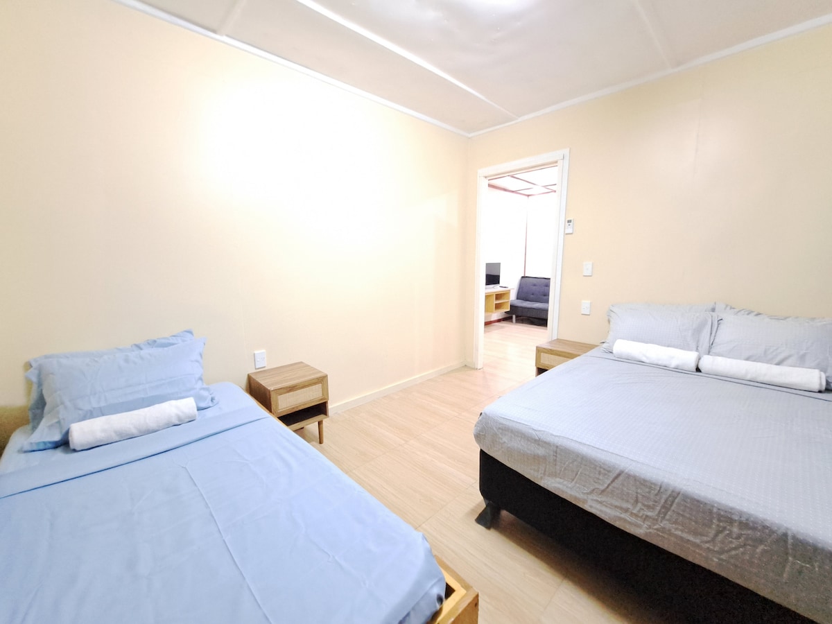 Maligayang pagdating sa aming komportableng 2 - bedroom retreat! Masiyahan sa open - plan na sala na may komportableng lounge, kumpletong kusina at lahat ng kailangan mo para sa komportableng pamamalagi. Nakakapagpahingang espasyo ang parehong kuwarto, na may aircon sa buong lugar, at may sarili kang washing machine, clothesline, at paradahan sa lugar. I - unwind sa tahimik na patyo o sa maluwang na bakuran sa harap. Perpekto para sa tahimik na bakasyon, para man sa negosyo o paglilibang!