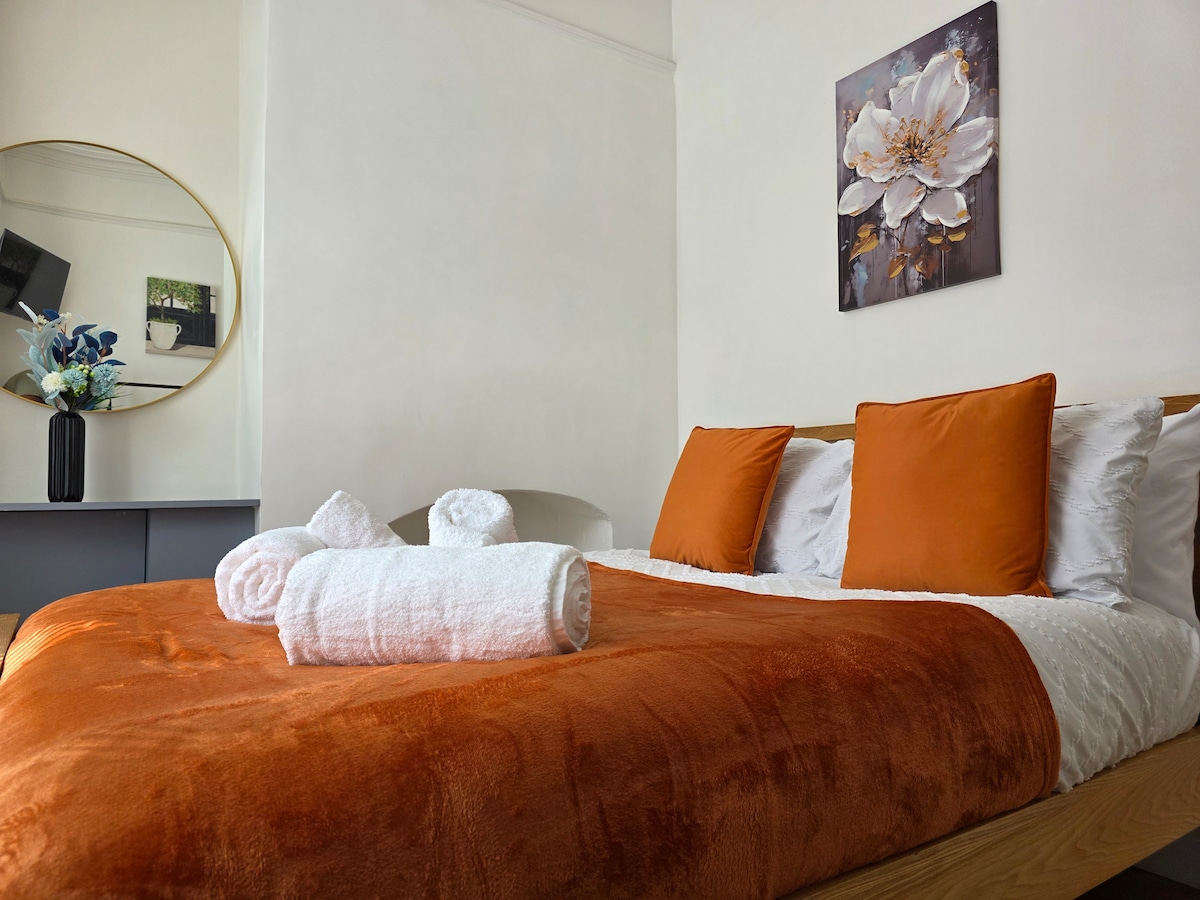 Matatagpuan ang ground floor - level na apartment na ito na may pribadong paradahan sa makasaysayang Hamilton Square. 5 minuto lang ang layo mula sa Liverpool City Center na maaabot mo sa pamamagitan ng tren o sa pamamagitan ng pagsakay sa sikat na ferry sa Mersey, ang parehong ay isang maikling lakad ang layo. King - size ang parehong higaan kung saan puwedeng gawing 2 single ang isa. Samakatuwid, perpekto ito para sa mga mag - asawa, bisita sa negosyo, pamilya, o sinumang nagbabahagi.