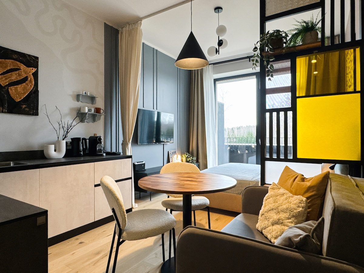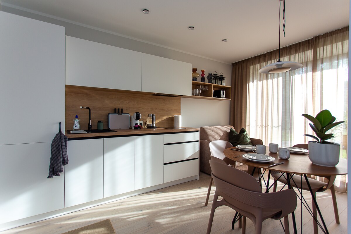 Ito ang maliit na BUTE apartment, na matatagpuan sa tabi ng Baltic sea. Ang inspirasyon para sa apartment na ito ay mula sa aking lolo na dating isang mangingisda sa malapit sa lugar na ito at isa sa aking mga paboritong isda sa kanyang catch ay BUTE (flounder). Ang perpektong lugar na ito para sa 1 -2 tao, kung saan maaari kang magrelaks at mag - renew mula sa kalikasan at sa Albatross spa center. Sa teritoryo ay ang pinakamahusay na restaurant para sa masarap na pagkain. I - enjoy ang iyong pamamalagi!
