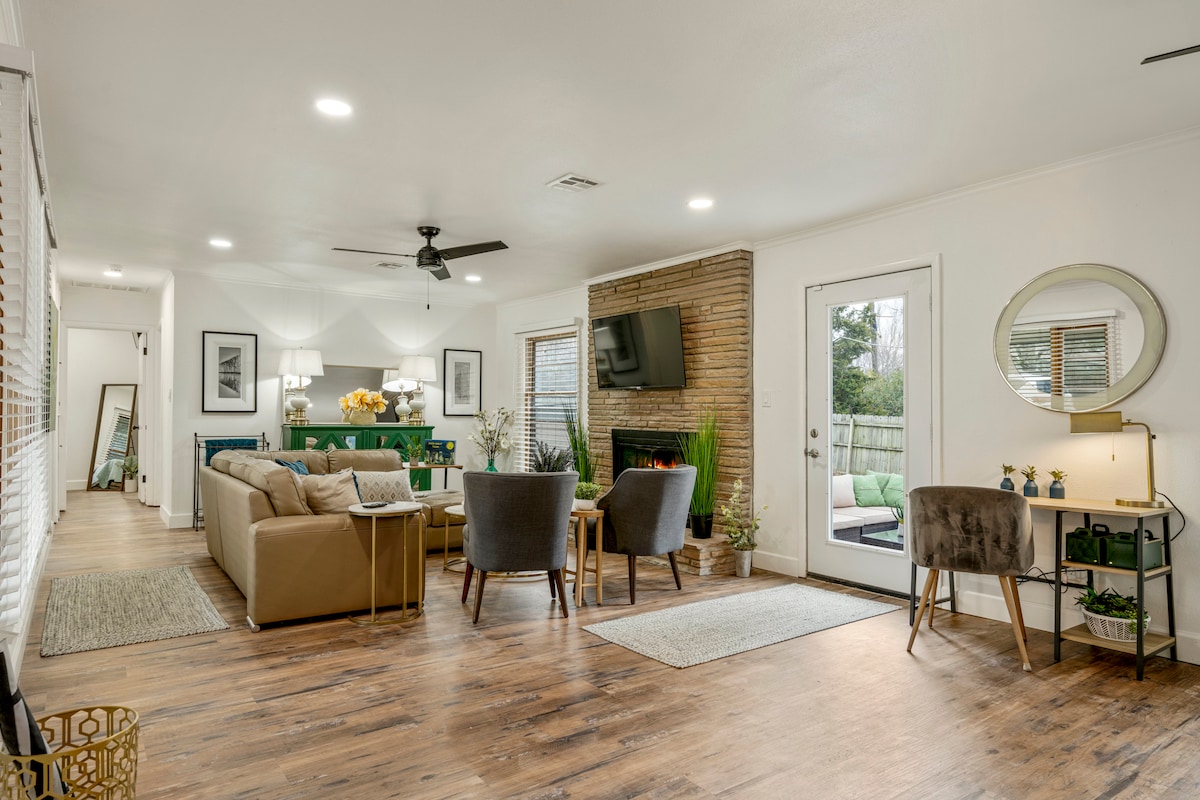 Mararangyang, sobrang komportable, maluwag, at naka - istilong dekorasyon na tuluyan sa tahimik na kapitbahayan na malapit sa mga restawran, tindahan, at parke. Magrelaks at gawing komportable ang iyong sarili! Maraming mapayapang lugar para makapagpahinga, makapag - refresh, o makapagtrabaho nang malayuan. Walang pakikipag - ugnayan, Sariling pag - check in. Kamangha - manghang floor plan, isang antas, pribadong bakuran na may fire pit, patio table at grill. Natutuwa akong i - host ka at ang iyong mga bisita! Mga pamantayan sa paglilinis ayon sa mga tagubilin ng CDC. Magtanong kung hindi available ang mga petsa, mayroon akong mga karagdagang property.