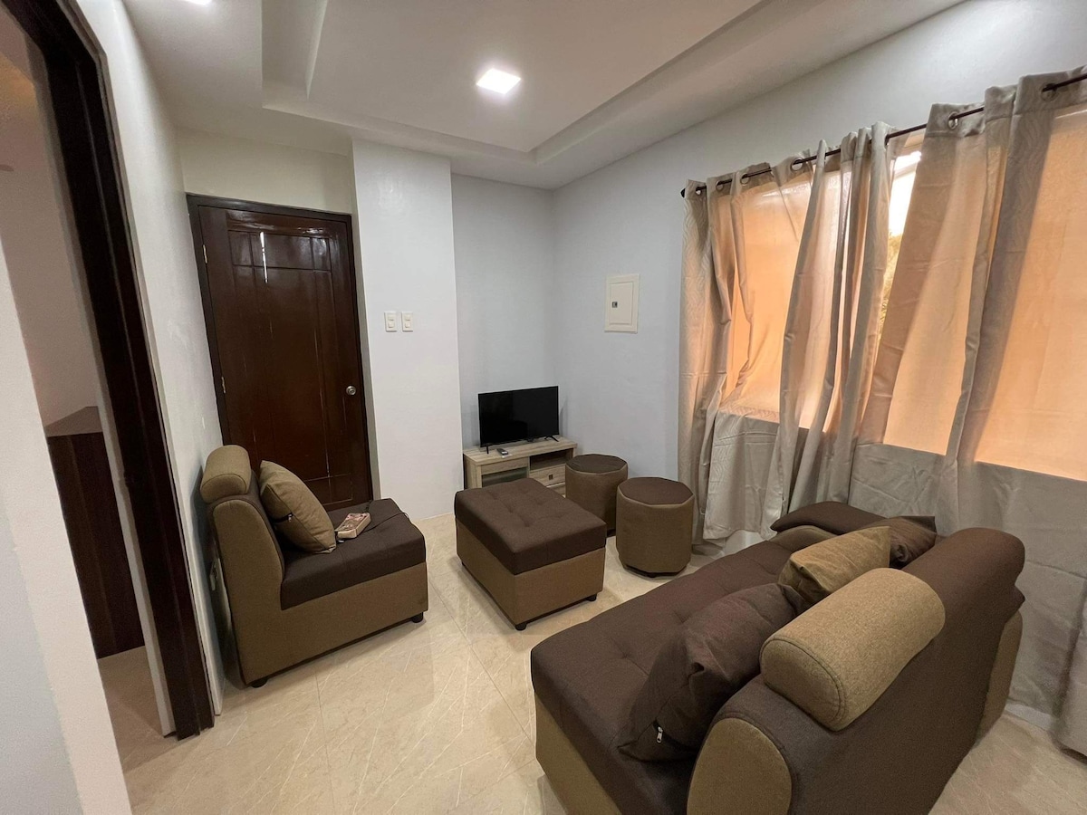 Manatili nang komportable at maginhawa sa maaliwalas na studio na ito na malapit lang sa mga tindahan (puregold, mall), pangunahing establisimiyento (capital arena, mga tanggapan ng gobyerno, provincial capitol, skypark, complex). Masiyahan sa solar-powered na kuryente na walang brownout para sa mga magaan na karga, libreng Wi-Fi, Smart TV na may Netflix at YouTube Premium, mainit at malamig na shower, libreng inuming tubig, kusina para sa pagpapainit ng pagkain, maluwag na paradahan, at libreng paggamit ng home gym.Perpekto para sa maikli at mahabang pamamalagi—nakakarelaks, ligtas, at walang alalahanin!