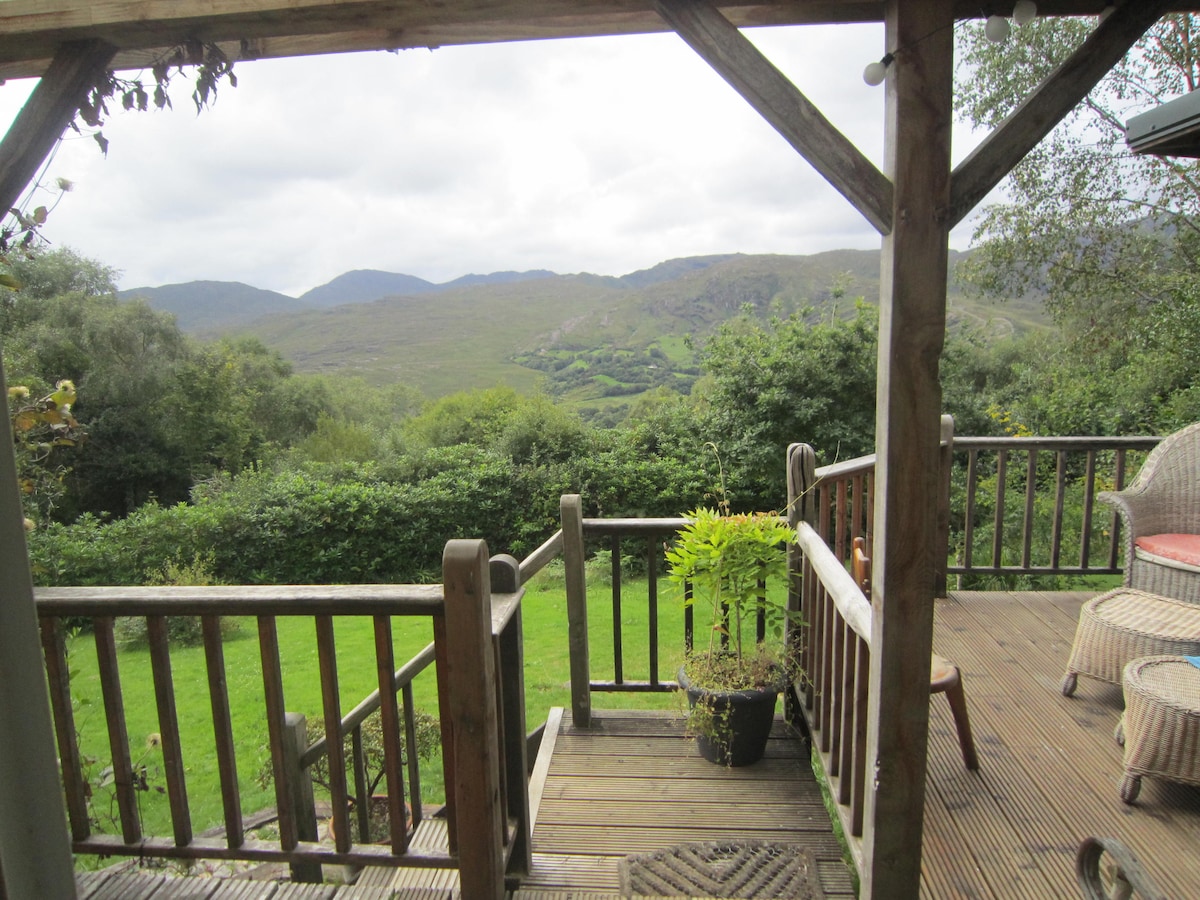 Perpekto ang cabin para sa sinumang nagnanais ng natatanging paglayo at makaranas ng magandang west cork. Isang 10 minutong biyahe papunta sa Glengarriff - 25 hanggang Bantry at 20 sa Kenmare . Maraming puwedeng gawin at makita sa lugar. Ito ay isang mapayapa at pribadong lugar na may ganap na lahat ng kailangan mong ibigay. Napakaganda ng mga tanawin at ng tanawin. Ang cabin ay ganap na self - contained set sa sarili nitong hardin. May magagandang lakad at biyahe sa malapit. O magpalipas lang ng oras, umupo sa deck habang nakatingin sa mahiwagang tanawin.